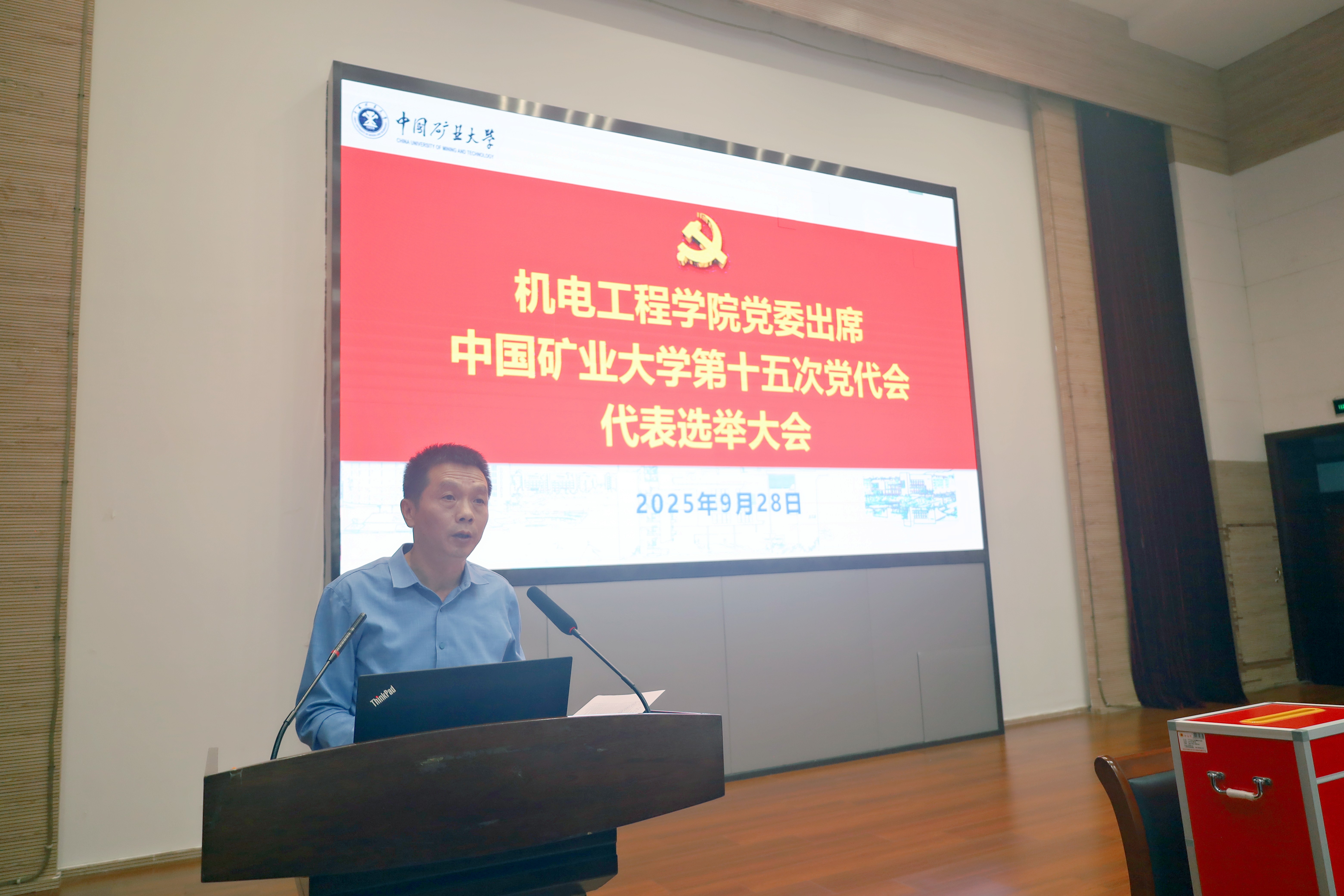 吴松书记首先传达了《关于召开中国共产党中国矿业大学第十五次党员代表大会的通知》相关要求。随后,韩福顺副书记宣读了大会选举办法(草案)并经大会表决通过。大会宣布总监票人、监票人建议名单。经在场全体党员表决,一致通过总监票人、监票人名单。在对代表候选人预备人选简要介绍之后,在场师生党员严格按照本次大会通过的选举办法投下了庄严的一票。最后,根据大会《选举办法》和计票结果,顺利选出出席学校第十五次党代会的11位代表。
