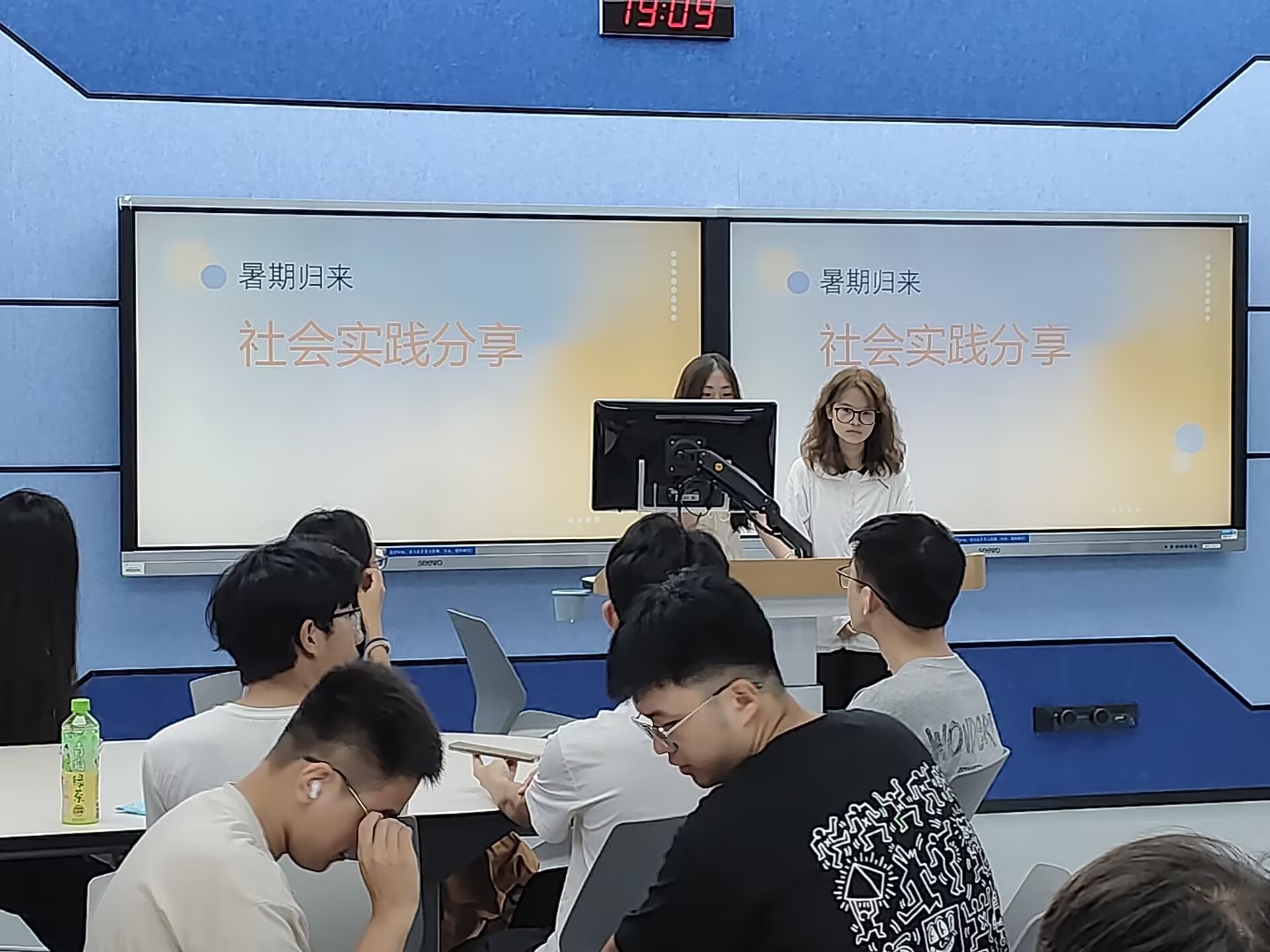 在暑期社会实践分享环节,毛馨与岳嘉欣同学分享了在徐州市麦楼区的实践经历。她们为小朋友辅导作业,耐心答疑解惑,不仅帮助孩子们解决学习难题,还锻炼了自己的沟通能力与责任感。二人表示,这次实践让她们体会到教育的意义,也更明确了自身成长方向,同学们深受触动。