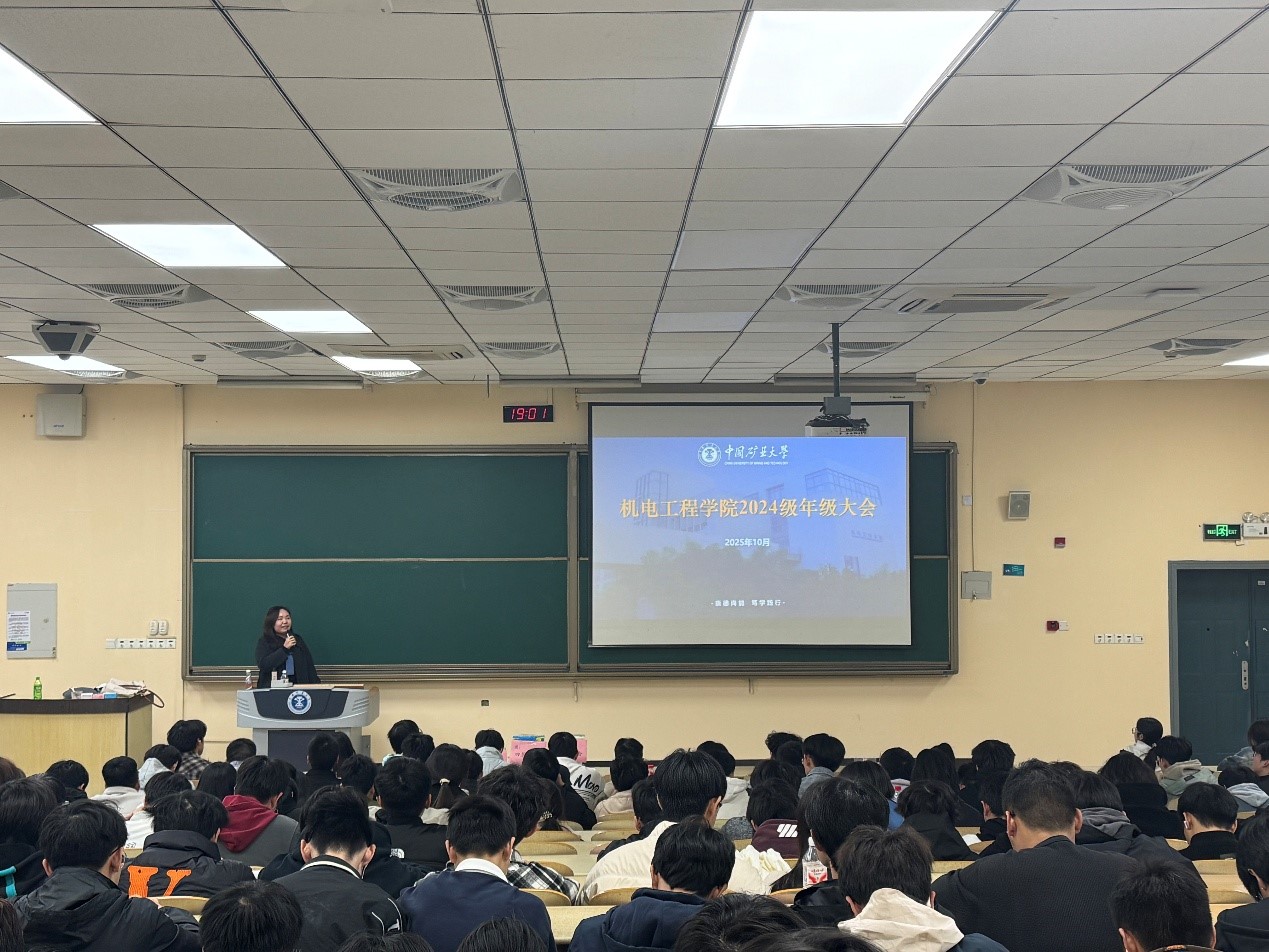 2025年10月23日,机电工程学院于博学4号楼B101召开2024级新学年第一次年级大会。本次会议由机电工程学院2024级辅导员吴丹妍主持,机电工程学院2024级全体学生参加。本次会议旨在强调学校规章制度,规范个人行为,帮助学生明确新学年目标,更好的规划未来。