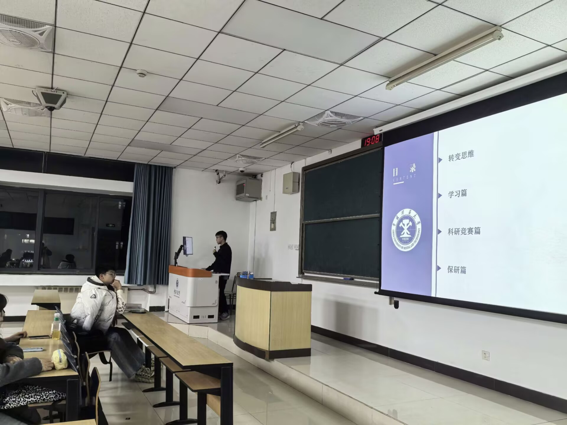 班会上邀请了班助姚永辉作为主讲嘉宾。作为一名优秀的学长,姚永辉用自己的亲身经历为同学们带来了一场干货满满的分享会。姚永辉以“如何在大学更好学习”为主题,从大学新生思维的转变、大学学习方法、参加竞赛的意义,以及保研流程并结合我们大学的具体情况来讲解。除了精彩的演讲,班会还设置了互动问答环节。同学们踊跃提问,从“如何平衡学业与社团活动”到“怎样克服拖延症”,每一个问题都是大家在生活中觉得困难且棘手的。姚永辉学长耐心解答的同时,也结合具体案例给出了切实可行的建议。