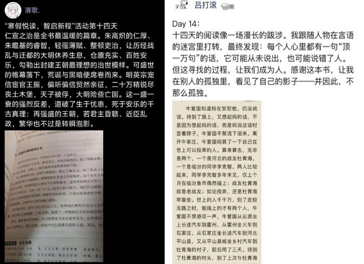 “寒假悦读,智启新程”主题活动于2月5日-2月24日在线上顺利开展,此次活动由我院学生会主办,学生会生活权益部承办,我院大学生心理自助中心协办,旨在引导学生明确阅读方向,培养自主阅读、深度思考的良好习惯,搭建寒假阅读交流平台,营造“爱读书、读好书、善读书”的校园文化氛围。